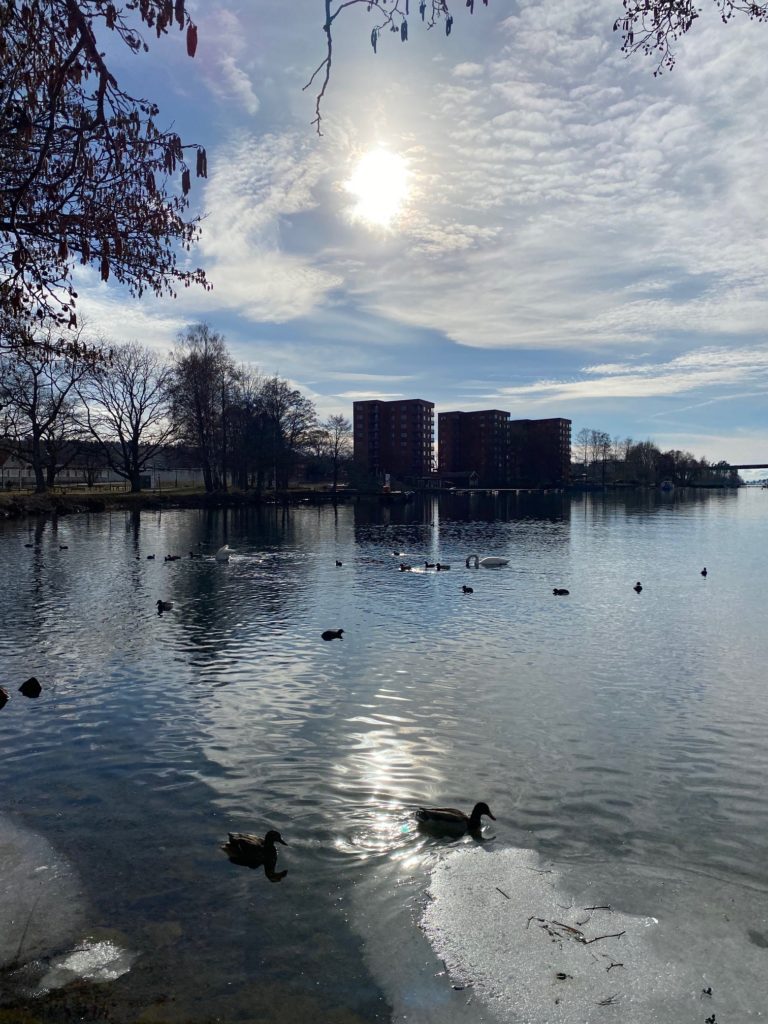 Från Brf Södra Strandens nya utsikt upplever du också Motalas historia tydligt. I vattnet framför husen återfinns vattenkonstverket Visionärens vinkelben som placerats i Platens punkt, platsen där Baltzar von Platen satte sin passare när han skapade Motalas solfjäderformade gatustruktur. En mycket vackert utformad stadsplan som du nu får möjlighet att uppleva från ovan i de nya bostäderna.